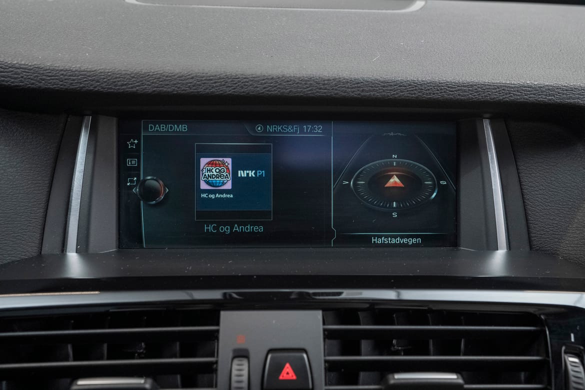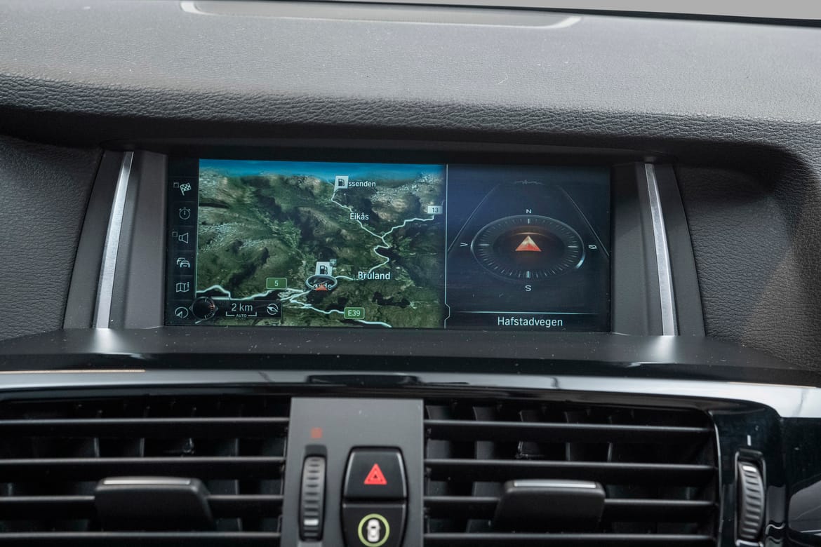 Vår bil har adaptiv cruisecontroll der bilen selv kan holde avstanden til forankjørende bil, et dyrt tilvalg som gir ekstra komfort og sikkerhet.